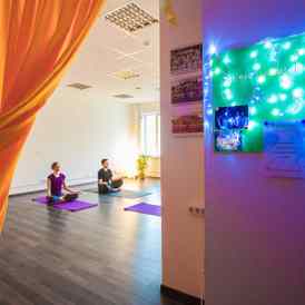 Даже темными зимними вечерами о солнечной Индии напоминают драпировки раздевалок, цвета куркумы, пестрые плетеные коврики, аромат натуральных благовоний, полы, пахнущие грейпфрутом. Заряженный энергией цвета интерьер вместе с тем остается чистым и лаконичным, своей ясностью и простотой помогает сконцентрироваться на практике. Студию «Омкара» отличает камерность обстановки, которая позволяет полностью расслабиться, оставив за порогом все тревоги и суету. Со стен на занимающихся смотрят портреты великих Свами и академические плакаты йога-асан, вдохновляя, наставляя и служа полезным занятием в перерывах между классами.